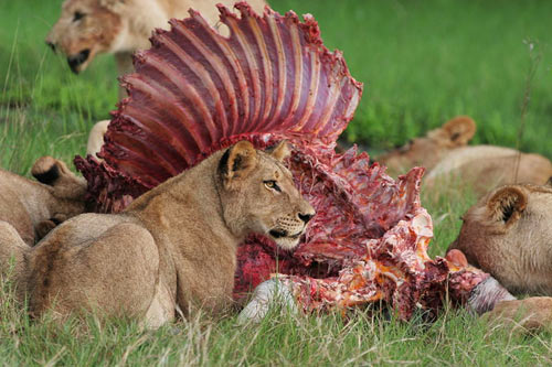 يتكون صيّادو المجموعة الرئيسيون من الإناث اللاتي يعملن بشكل جماعي لإصطياد ضحاياهن من الحيوانات مثل الحمير الوحشية، الظباء، الحيوانات البرية، والحيوانات الكبيرة الأخرى المتواجدة معها في نفس المنطقة .